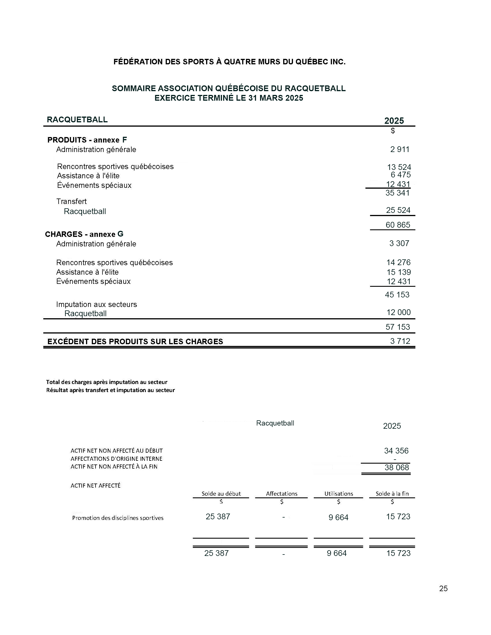 Conseil d’administration de l’Association Québécoise de Racquetball